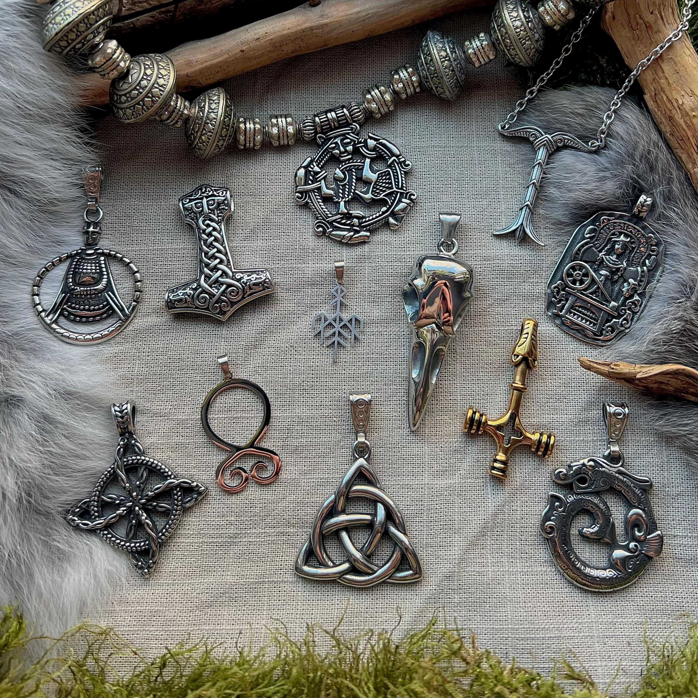 Vikingasmycken av rostfritt stål, halvädelsten, koppar och läder inspirerat av fornnordisk mytologi, folktro, magi och svensk natur.