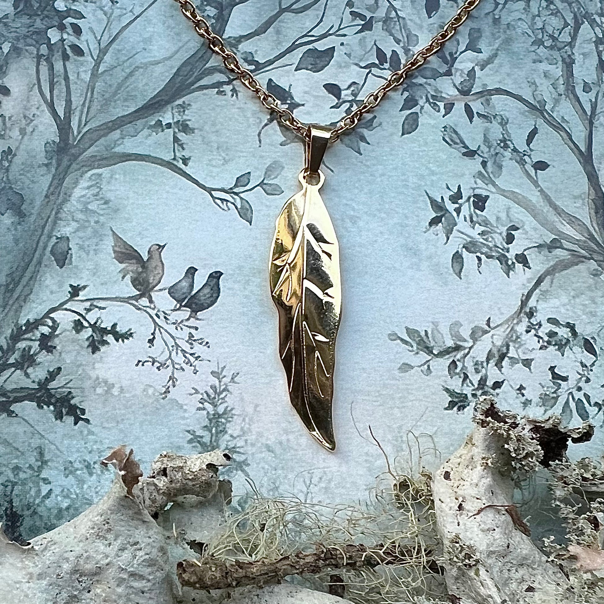 Halsband med Yggdrasils löv i guldfärgat, rostfritt stål