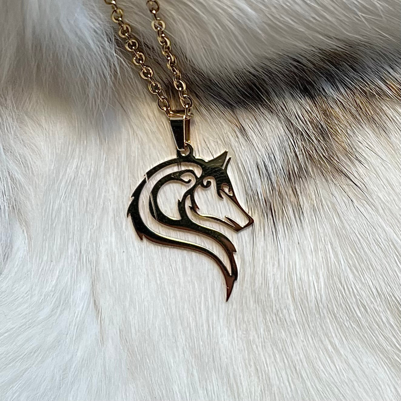 Halsband helt i guldfärgat rostfritt stål med varghuvud.