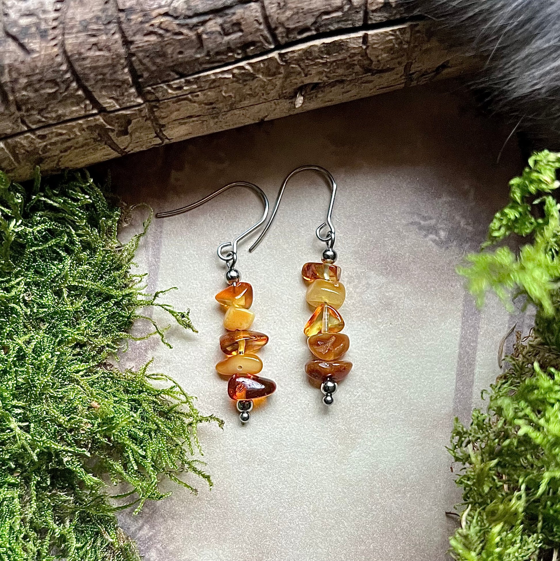 Björkhängen med bärnsten och krokar av kirurgiskt stål.