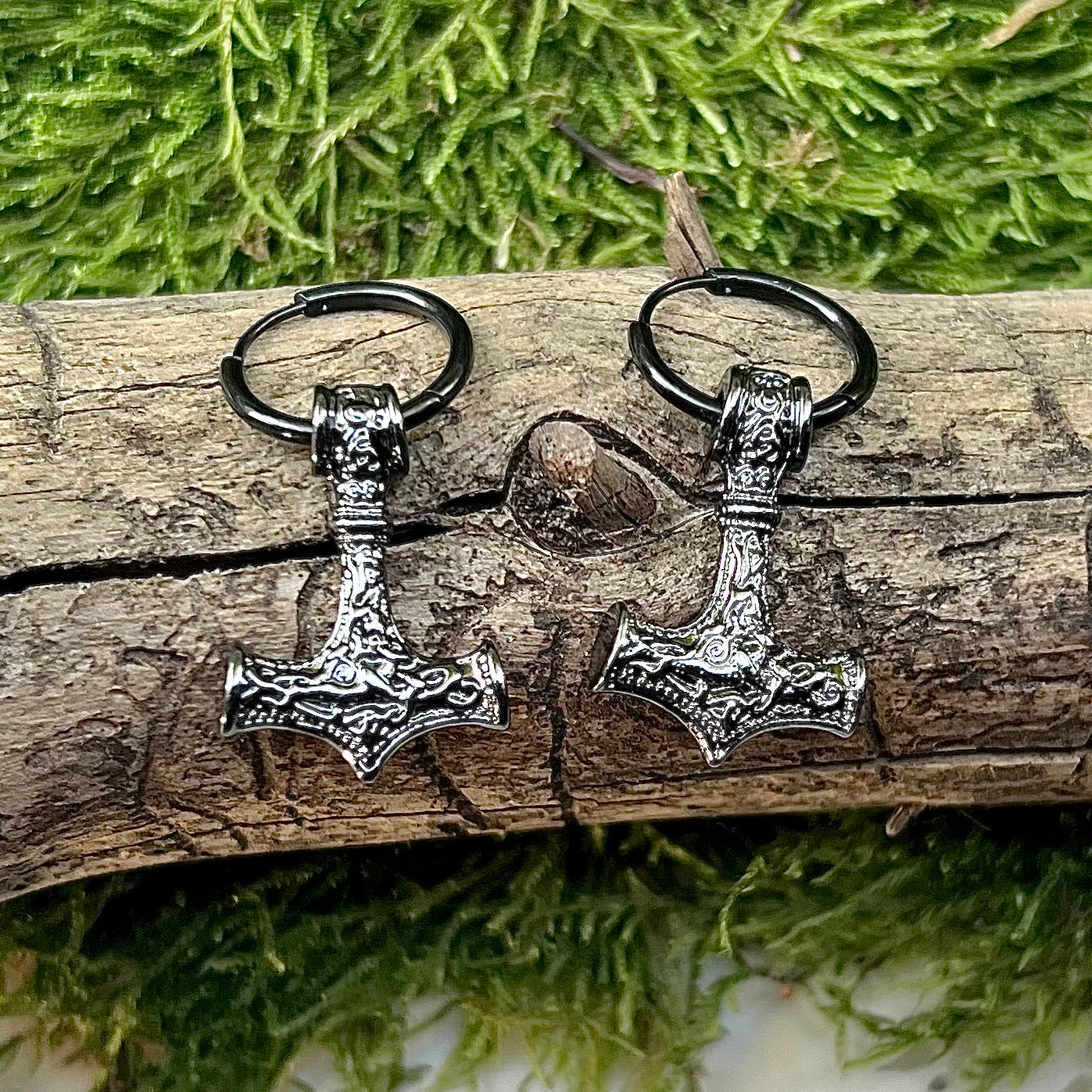 Örhängen med torshammare i svart, rostfritt stål