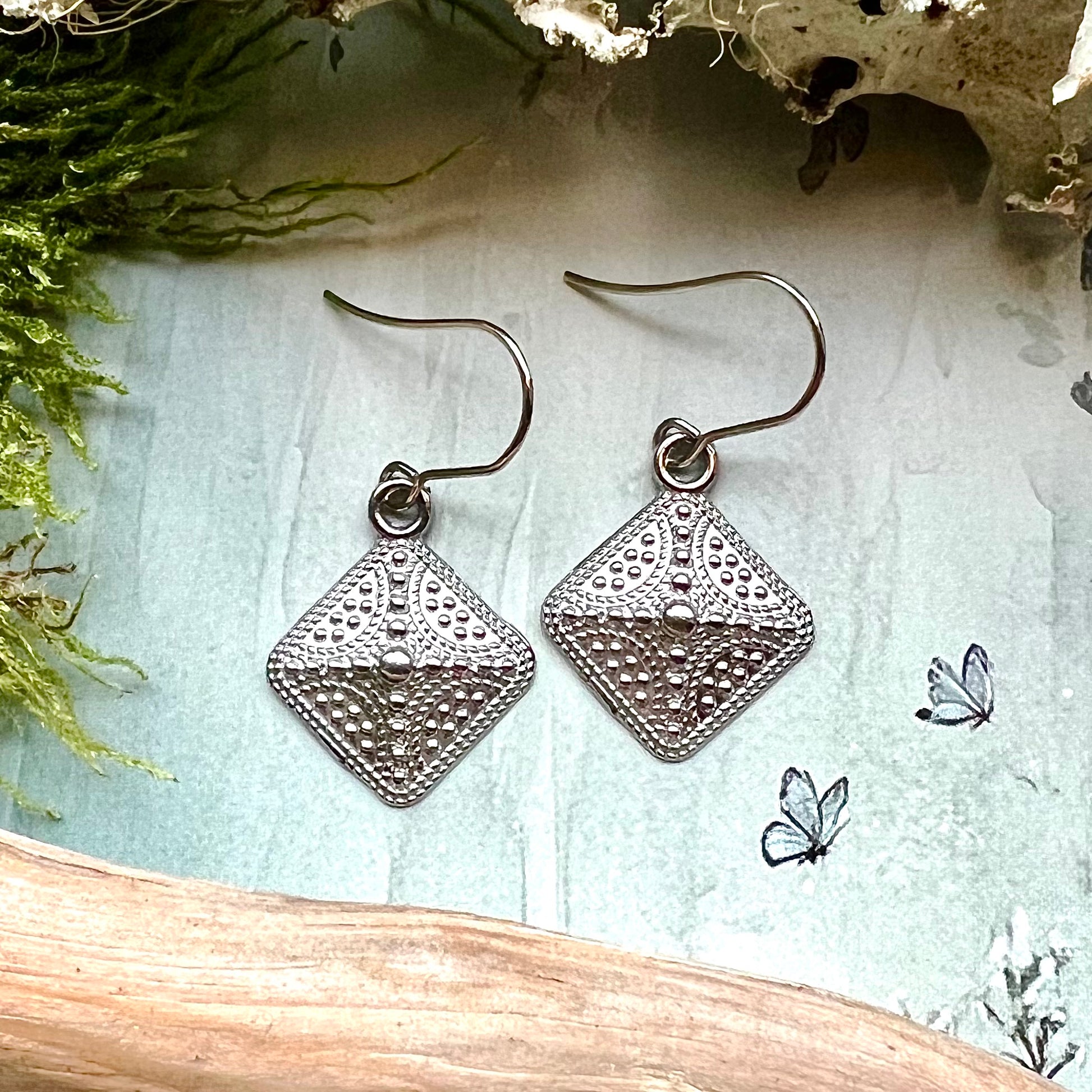 Örhängen i rostfritt stål med krokar av kirurgiskt stål.